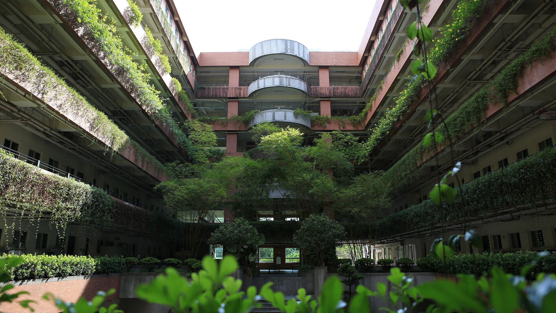 綠意盎然的管理大樓中庭